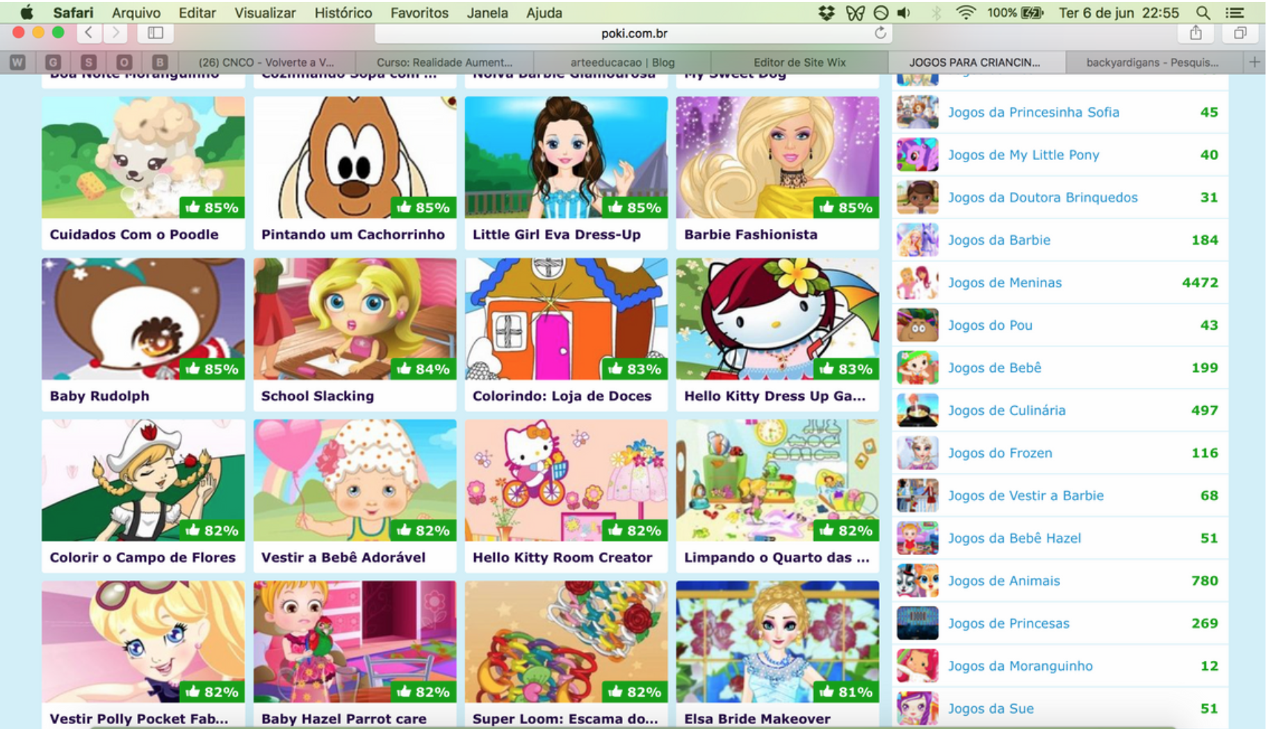 8º Link) O site “Mr Jogos também contém uma página de jogos online especificamente para meninas, descrito como “JOGOS ONLINE INFANTIS PARA MENINAS DE 3 A 4 ANOS“. A lista de jogos aborda majoritariamente temas como vestir bonecas e atores, colocar tatuagens em bonecas, cozinhar e passeios.
